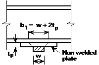 For non‑welded flange plates, the equivalent eccentricity of loading from the centreline of the web is given by:
