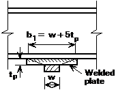 The factor 4 allows for two webs and dispersion of load in two directions and applies to a member that is continuous over bearing or an end bearing member with a continuously welded sealing plate.