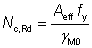 For Class 4 sections, the value of Nc,Rd can be calculated using the effective areas tabulated in the tables of dimensions and gross section properties and the tables of effective section properties within this website of this website. The values are not shown in the tables.